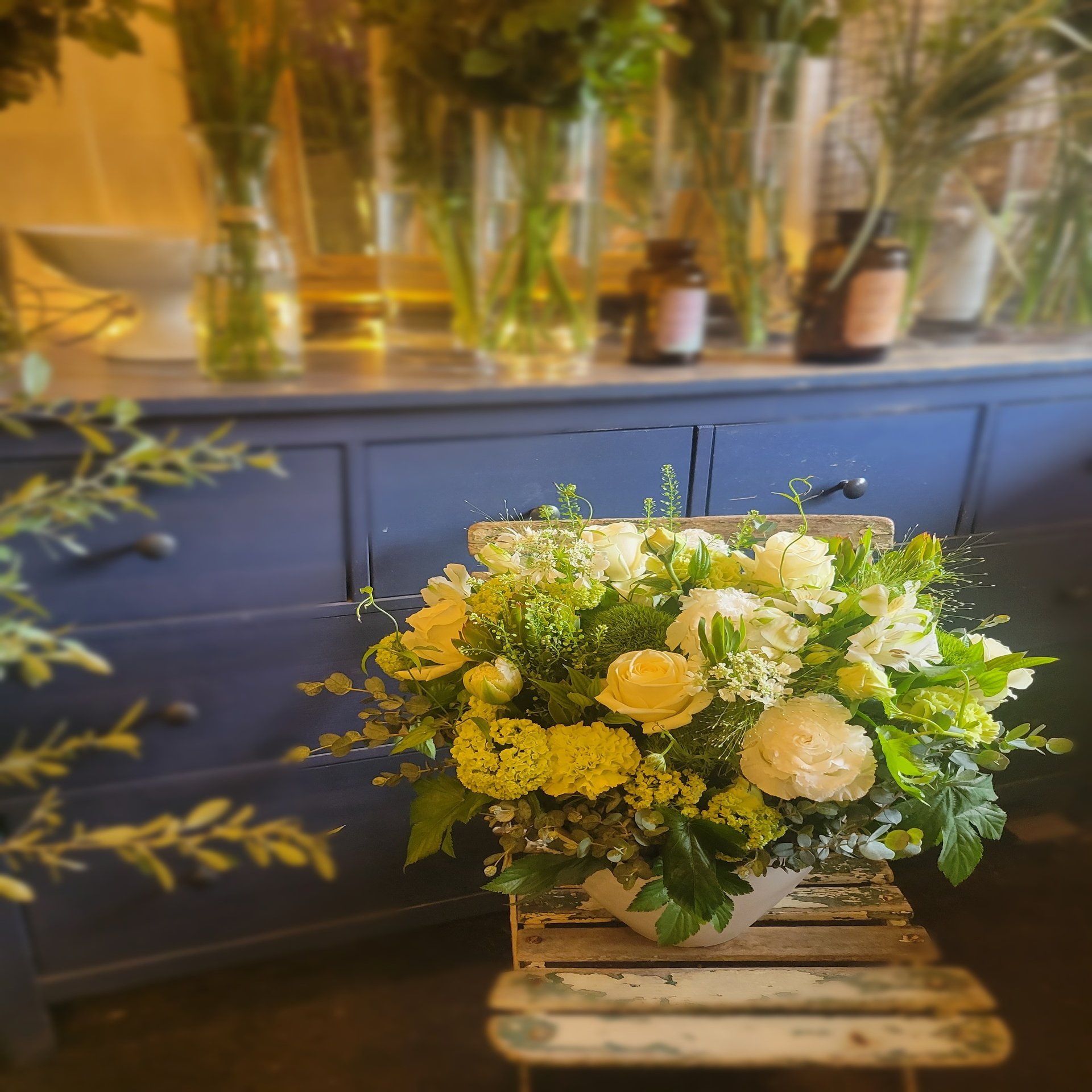 一つひとつの花が、それぞれ異なる方向を向いて会話をしているようなイメージです。そうすることで、アレンジメントの中に視線の流れが生まれ、自然と奥行きが感じられるようになります。