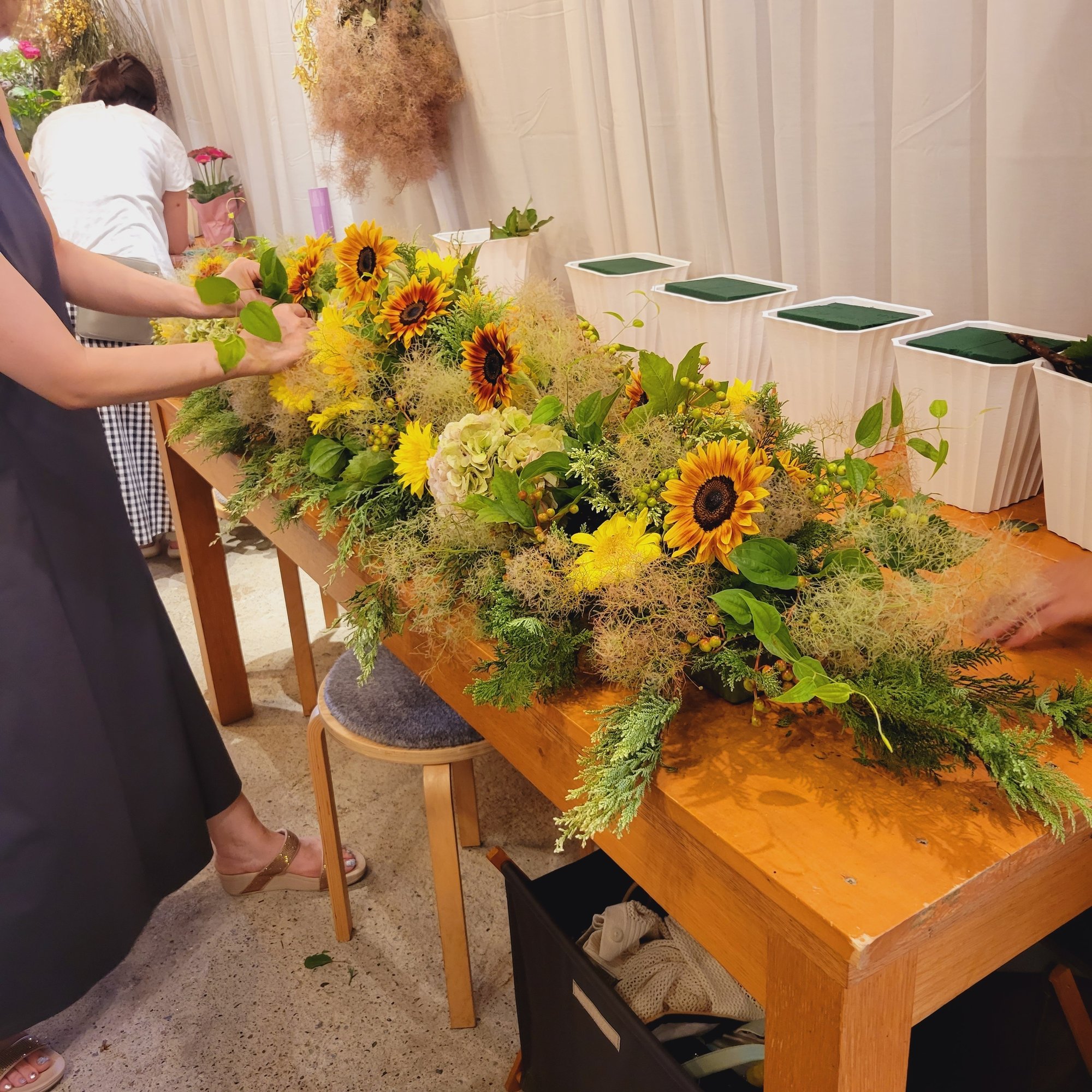 - 透ける・飛ばす・遊ぶ: レースフラワーや千日紅、ニゲラなどの軽やかな花材を使いこなし、立体感と動きを演出するスキル。